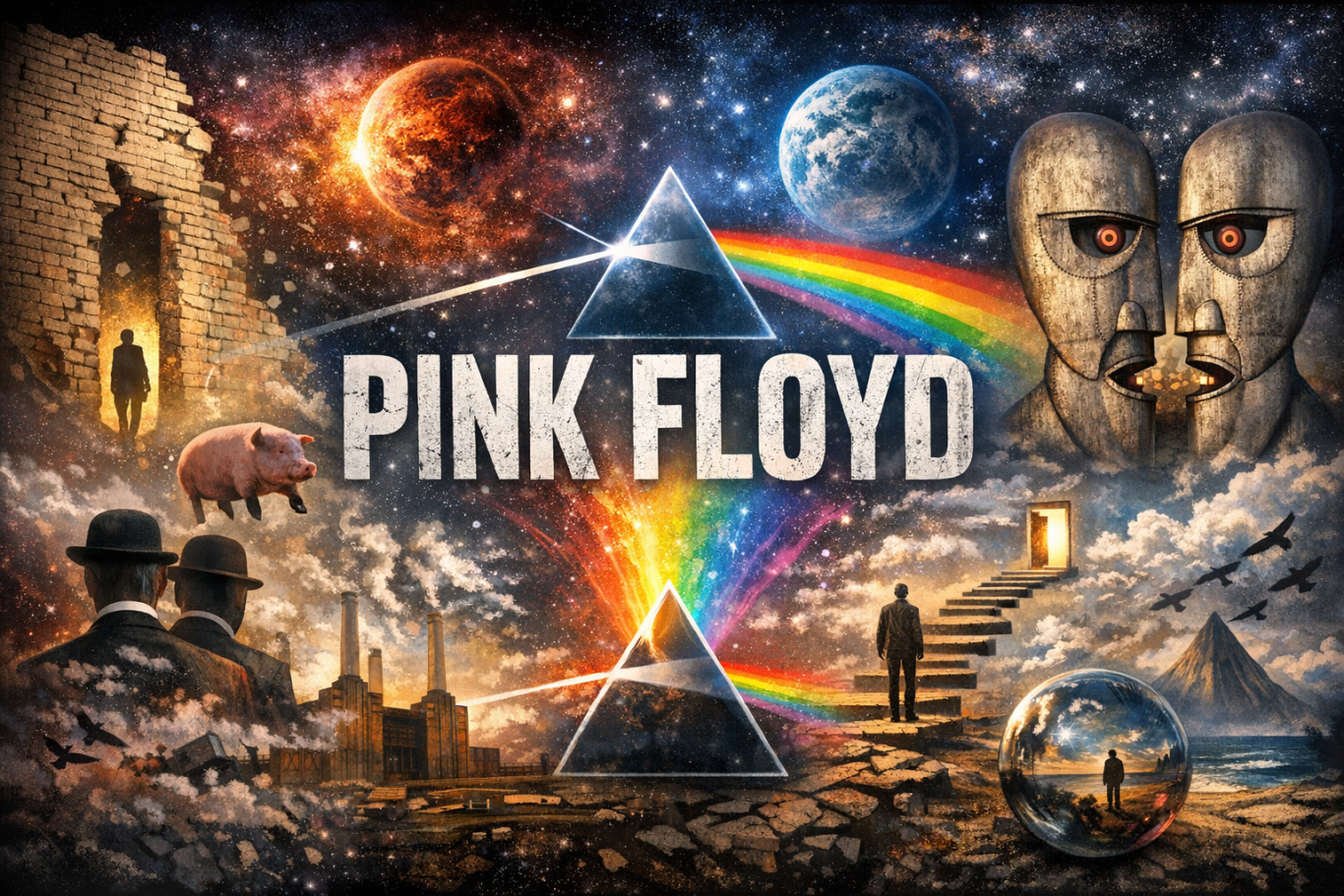 Pink Floyd was een iconische Britse rockband die het geluid en de esthetiek van de progressieve rock van de 20e eeuw definieerde. Hun epische conceptalbums, innovatieve geluidsexperimenten en visuele shows hebben hen naar de top van de muziekindustrie gekatapulteerd. Met een combinatie van geniaal muzikaal talent en provocerende teksten werden zij de onmisbare pioniers van de muziekwereld.