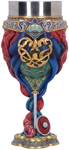 Valhalla Goblet 17cm, hars w/roestvrij stalen inzetstuk, bruin
