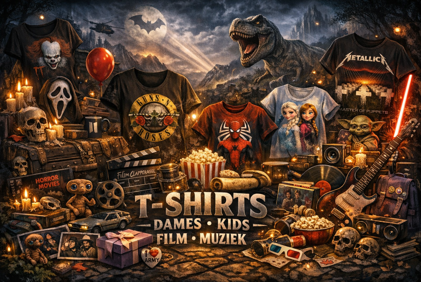 T-Shirts Kids Merchandise draait om stoere, opvallende kleding en accessoires voor kinderen die houden van rock, metal en een eigenzinnige stijl. Het combineert de energie van de metal‑scene met comfortabele, kindvriendelijke materialen, zodat jonge fans hun persoonlijkheid kunnen laten zien zonder in te leveren op draagcomfort.